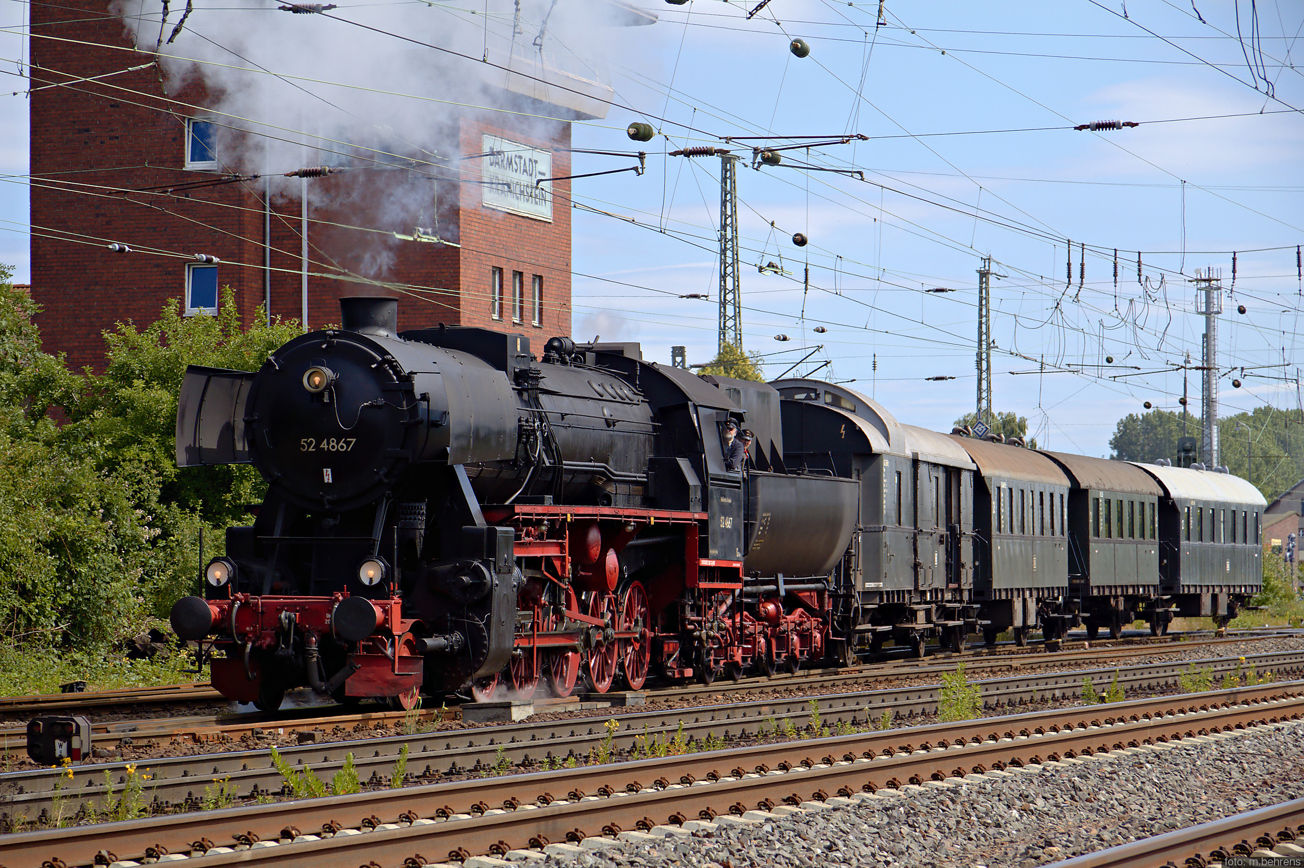 Hier bin ich als Heizer auf der Lok 52 4867 aus dem Jahre 1943 der Historischen Eisenbahn Frankfurt unterwegs. (Juni 2011)